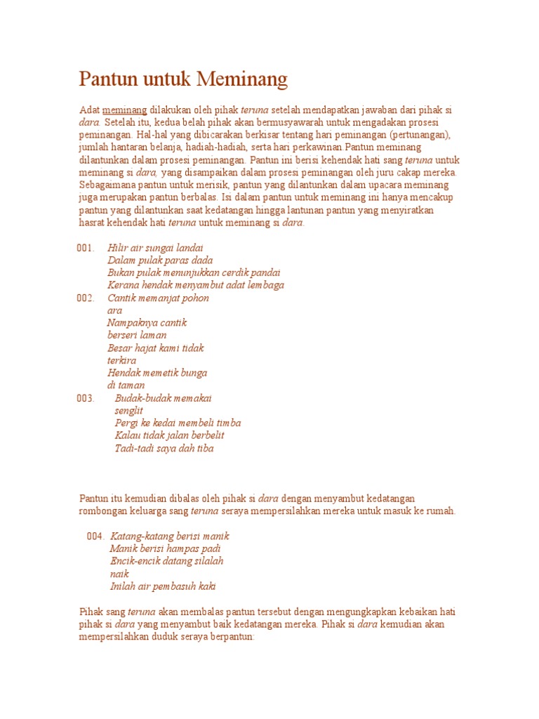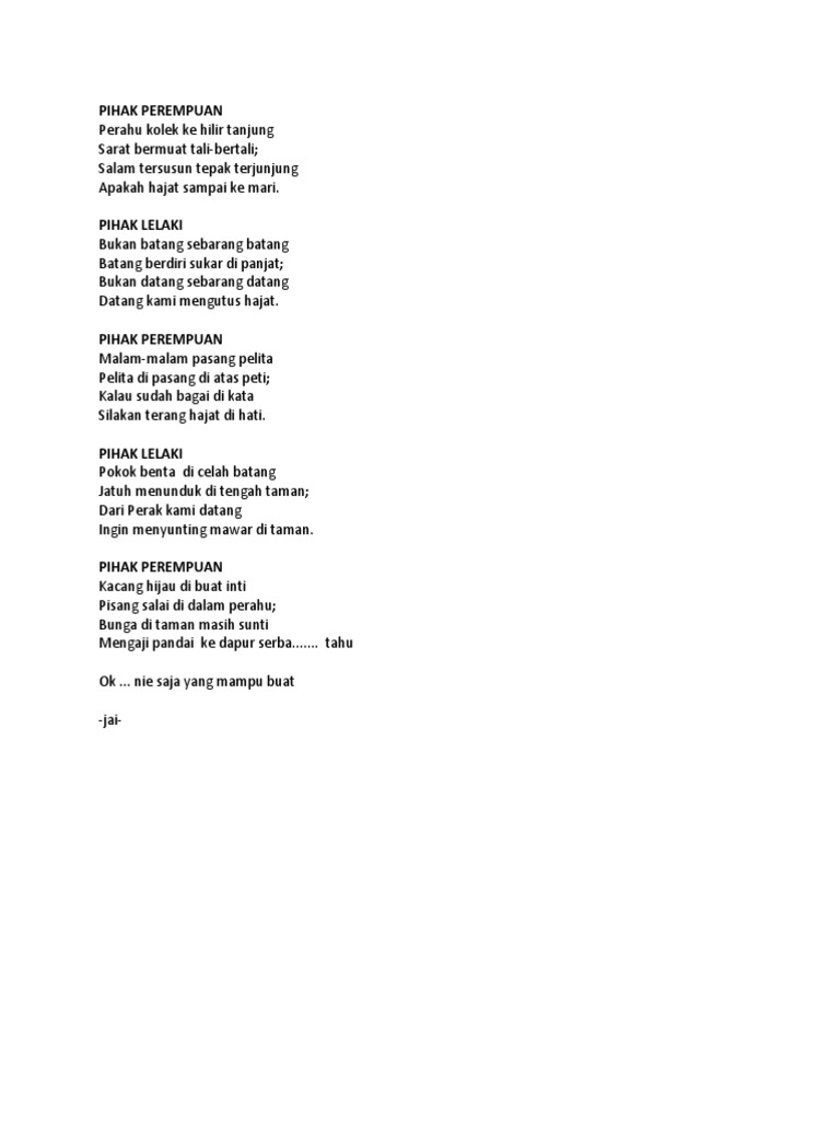 Pantun melayu pertama yang sering digunakan dalam kehidupan sehari-hari adalah. PANTUN MEMINANG scribd com. Nikah dalam agama Islam menurut bahasa adalah kumpul himpun dan campur.